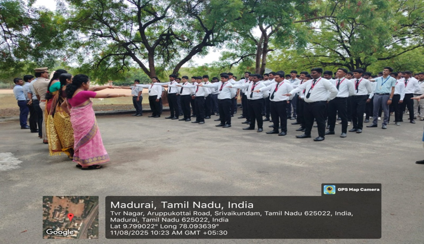 On 11th August 2025 at 10:23 a.m., the Anti-Ragging Cell organized a pledge-taking ceremony at SLCS, Madurai. Around 600 students participated and solemnly affirmed their commitment to uphold a ragging-free, safe, and respectful campus environment.