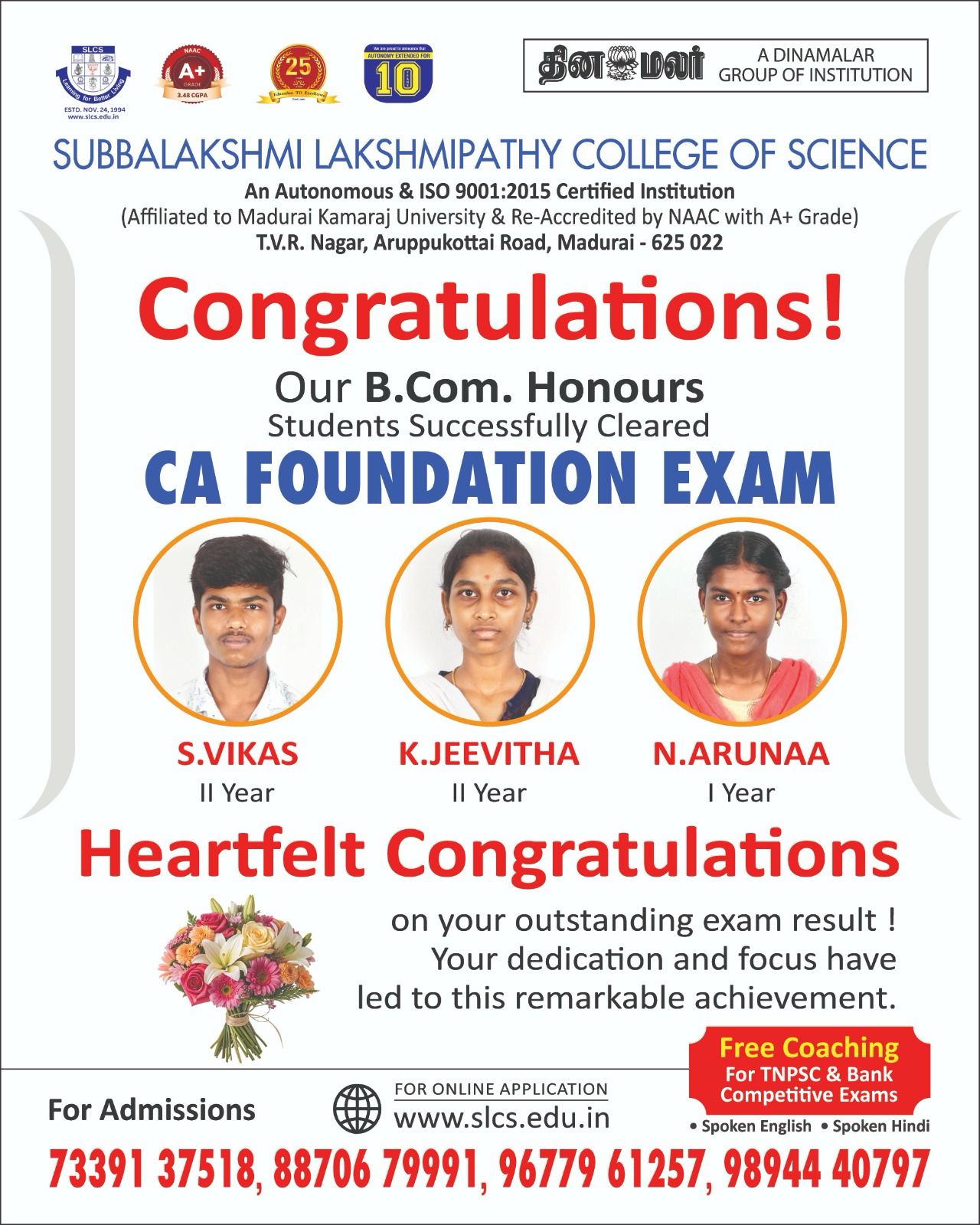 - CA Foundation Exam Coaching during the months of April & May